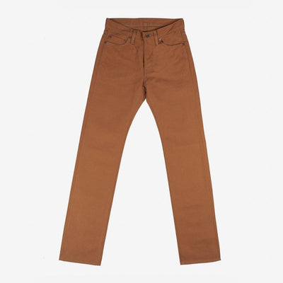 Slim straight jean with a low/medium rise in 17oz brown 100% cotton duck. Iron Heart's first ever non-denim 5-pocket jeans, first introduced in 2012. These have been popular since day one, and team wonderfully with an indigo denim or blue chambray shirt.