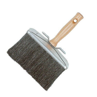 This large brush is a high quality tool for applying pine tar, painting, staining, oiling, or whitewashing. The strong natural hog-hair bristles are ideal for thick products such as pine tar, and with the large 7"x3" wide bristle end, a lot of area can be covered! The contoured wooden handle and built-in hanger are removable.